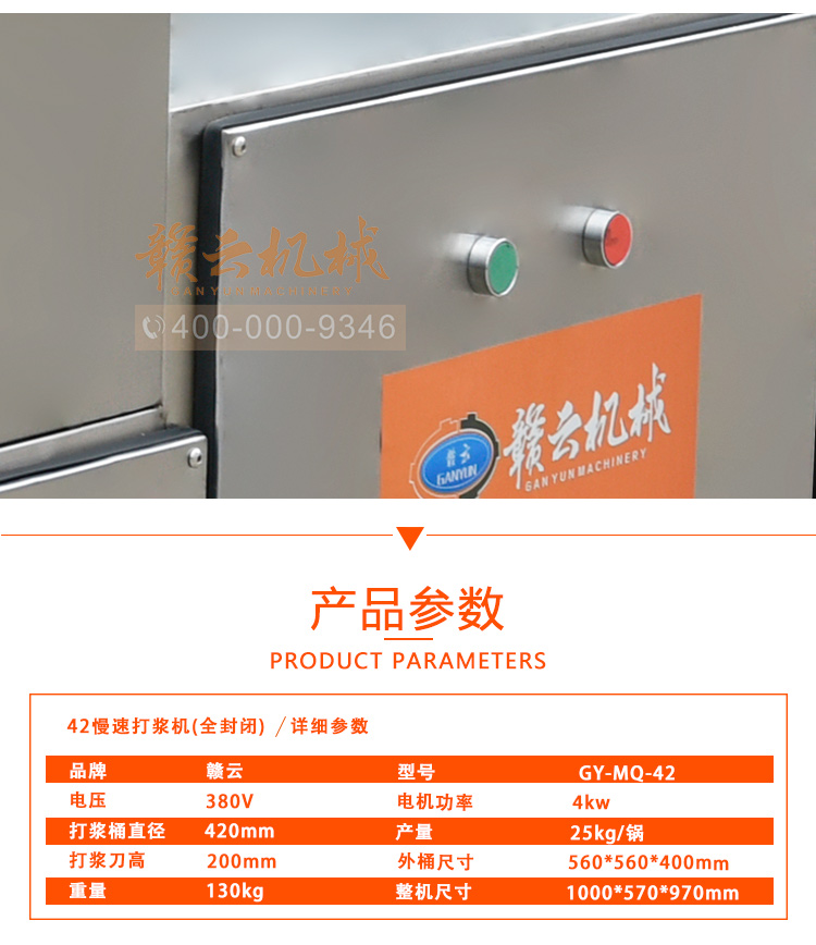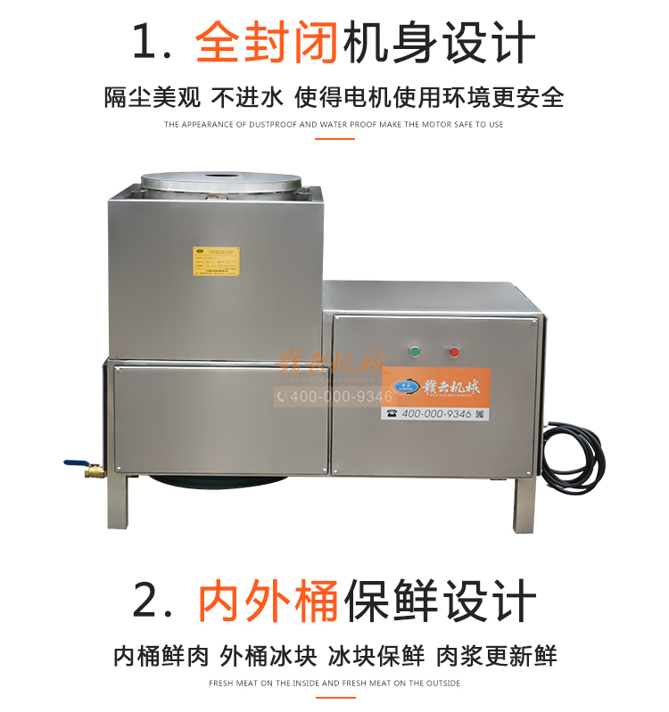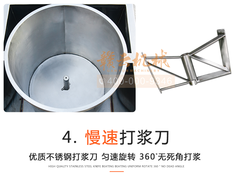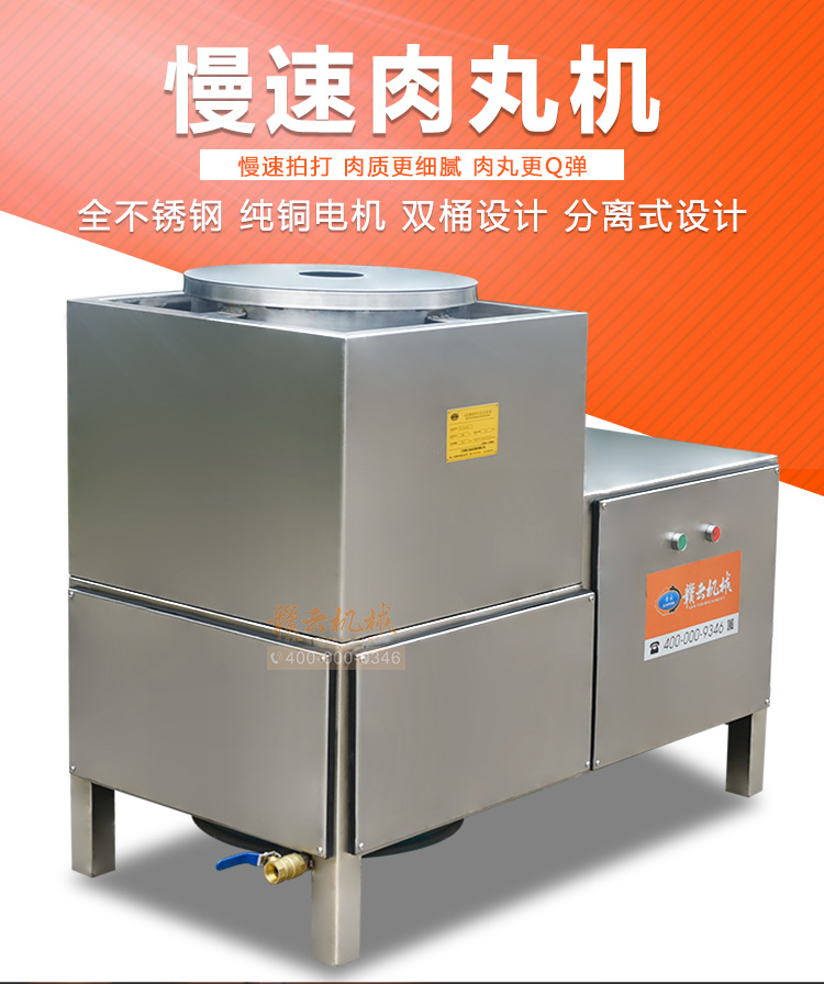 中大型魚丸打漿機(jī)采用全不銹鋼材質(zhì),有效的保護(hù)了電動機(jī),操作上更安全,制作魚丸更衛(wèi)生,42型慢速肉丸打漿機(jī)可一次加工50斤左右魚漿,是中型魚丸,牛肉丸加工首先選慢速拍打設(shè)備之一,贛云歷經(jīng)十年品質(zhì),為您加工魚丸,牛肉丸等設(shè)備保駕護(hù)航。