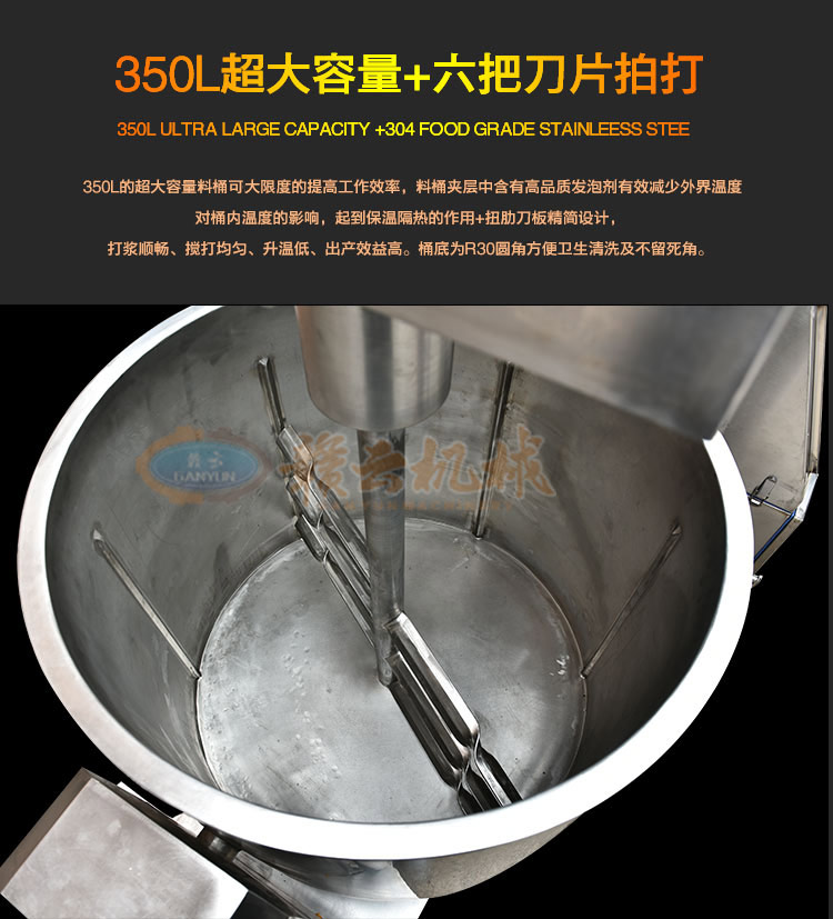 變頻調(diào)速液壓打漿機(jī)是肉丸、貢丸、魚丸、臺(tái)灣烤腸等多種肉制品(特別為中高檔產(chǎn)品)的主要打漿設(shè)備,其產(chǎn)品的口感效果、組織結(jié)構(gòu)、成本控制等技術(shù)環(huán)節(jié)均在于打漿機(jī)的選用,在打漿升降過程中穩(wěn)定性好,打漿速度快,機(jī)座穩(wěn)固可靠。