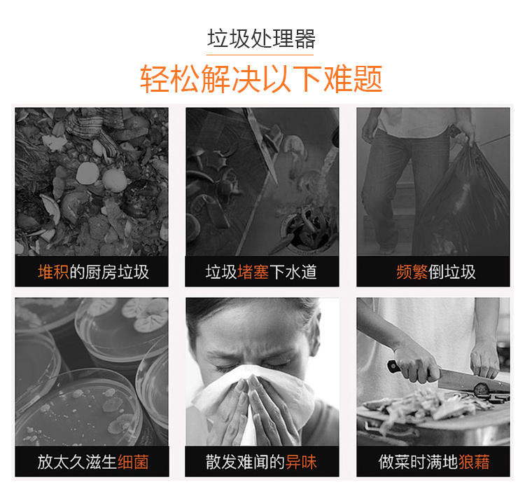 商用垃圾處理器,雙層五級研磨技術,研磨顆粒大小5毫米,食物垃圾連續處理,無懼堵塞可處理的垃圾:殘羹剩飯、肉魚骨刺、蔬菜瓜果、蛋殼、茶葉渣、玉米棒芯、牲畜骨頭、硬質貝克等食物垃圾