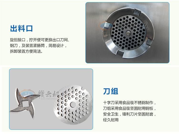 這款32B型強(qiáng)力絞肉機(jī)采用不銹鋼材質(zhì)加工精致而成,改傳統(tǒng)的鑄鐵絞肉機(jī)頭為不銹鋼絞肉機(jī)頭,使之接觸食品部位均為不銹鋼材質(zhì),不生銹,達(dá)到食品安全衛(wèi)生要求。