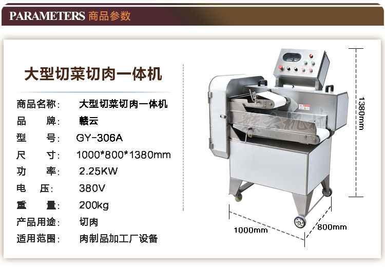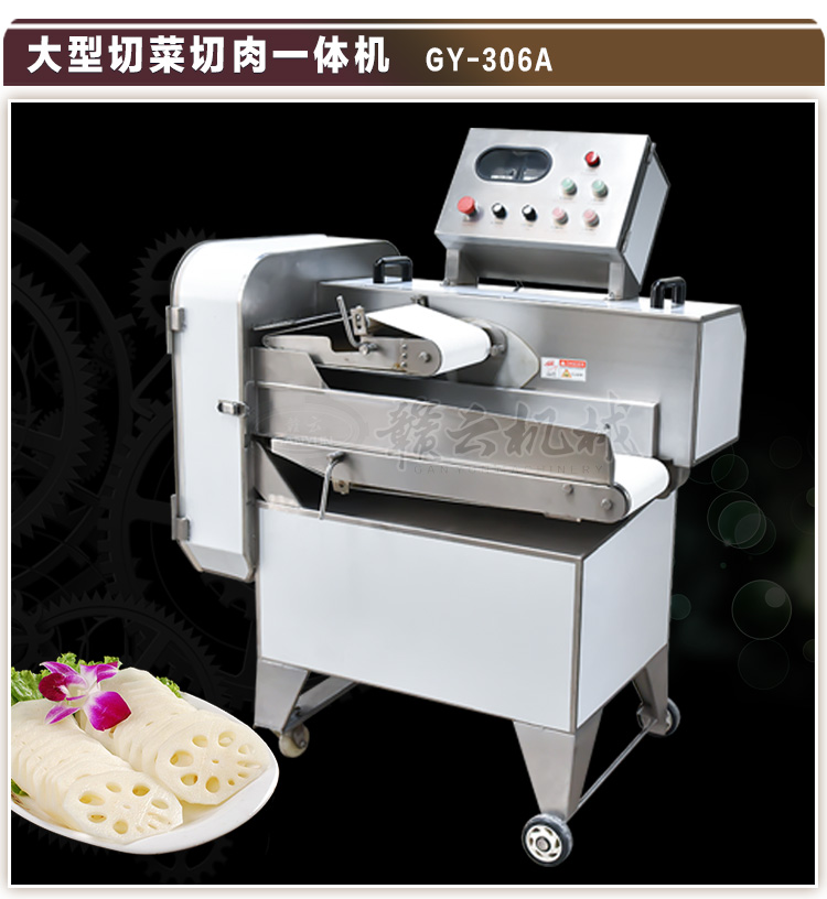 大型切菜切肉一體機(jī)用途可切長條狀蔥、大蒜、韭黃、芹菜、高麗菜、大白菜、魚肉、豆干、菠菜、瓜類等、可以連接自動化生產(chǎn)線。針對食品加工廠切肉量大的特點,該機(jī)更換切肉刀具后可將凍肉、鮮肉、等一次性切成肉片,具有機(jī)型大、產(chǎn)量大、低速