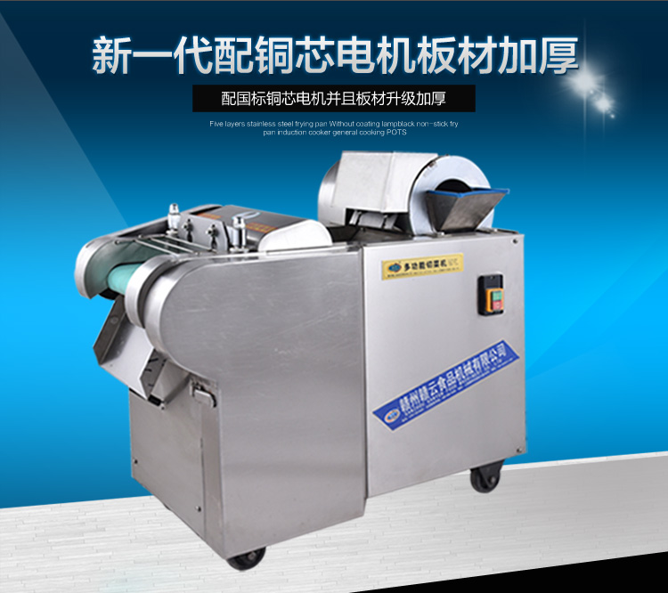 2015年新款加厚型切菜機(jī)是我廠經(jīng)過多年的切菜實踐經(jīng)驗和客戶反饋等綜合信息考慮設(shè)計而成的,比原來的880型切菜機(jī)加厚板材,并配用全銅芯超穩(wěn)定型電機(jī)。保證產(chǎn)品質(zhì)量的同時,使得產(chǎn)品外形更加美觀,更顯不銹鋼檔次。一小時可切600公斤蔬菜,切菜厚薄可調(diào)0-20mm,切片厚薄可調(diào)0-10mm,模擬手工切菜原理設(shè)計而成,采用輸送帶完美配合離心切片機(jī)構(gòu)和豎刀切菜機(jī)構(gòu),運(yùn)用手壓原理將切切成有規(guī)則的,間隙均勻的片、丁、絲、條等狀。