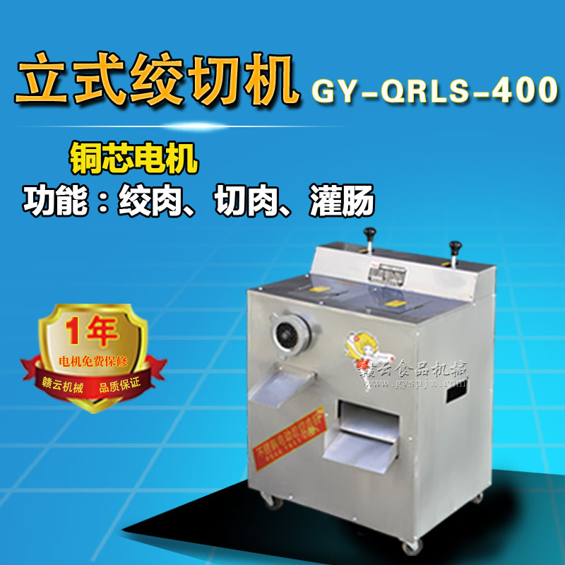 贛云牌立式絞切機采用外表不銹鋼材質(zhì),離合開關控制絞肉和切肉,具有絞肉、切肉、灌腸三大功能集于一身,是冬季灌制香腸的推薦食品設備,該機動力配備220v-1.5kw銅芯電機。