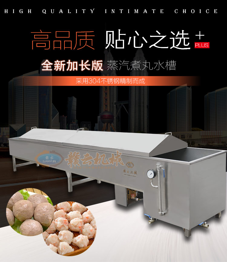 主頁-> 肉丸成型機械->自動煮丸子水槽->5米水煮槽蒸汽款