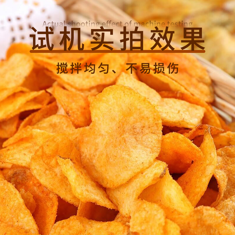 適用于堅果、蠶豆、牛肉干、薯片、花生、月亮巴、鍋巴等食品的快速均勻上料調味。