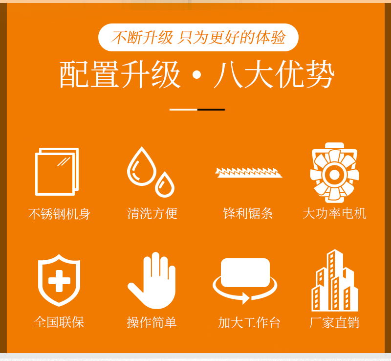全自動大型商用鋸骨機擁有大容量切割工作臺,能對排骨、豬蹄、凍肉、雞、硬骨頭、鴨、羊蝎子、豬頭、牛頭、凍魚等進行精準切割。這臺鋸骨機設備采用食品不銹鋼材質打造,讓食品衛生更安全。