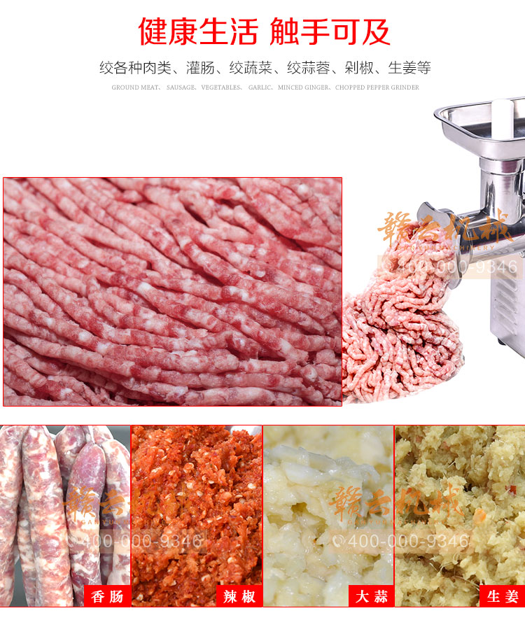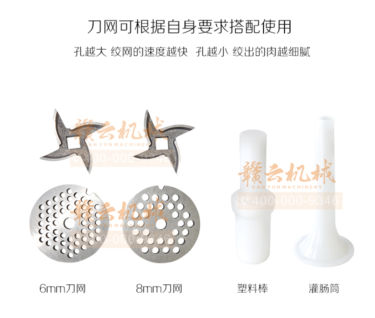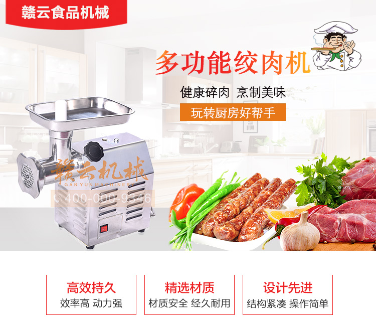 小型絞肉機適用于任何酒店、飯店、食堂、餐廳等。有不同規格的立式、臺式機型,省電省電,經久耐用,方便快捷,電動絞肉機,外形美觀,效率高,功耗低。同時,價格低廠家直銷的價格,可靠的質量,先進的高級不銹鋼,經久耐用,可長時間使用,絞肉餡效果好,性能穩定,采用進口的銅芯電機,人性化設計,安全可靠,不僅有設計安全的裝置,并且在絞肉的時候配有與任何肉類可以攪拌攪拌軸,無任何不安全因素,可以按照工藝要求切成顆粒或肉泥,便于和其他輔料混合,鮮肉絞肉機器滿足不同肉制品的需要,小型絞肉機具有操作簡單,價格低,質量好。贛云食品機械為您提供各自肉制品加工設備,歡迎您前來了解。