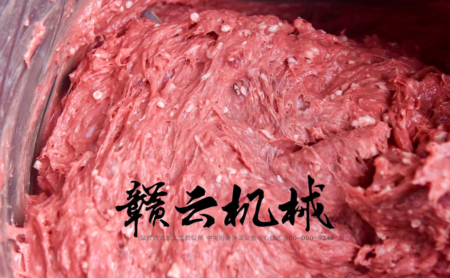 在把肉粒用打漿機(jī)制成牛肉將 過程中加入特制的調(diào)味料 打好的漿必須是拉絲狀