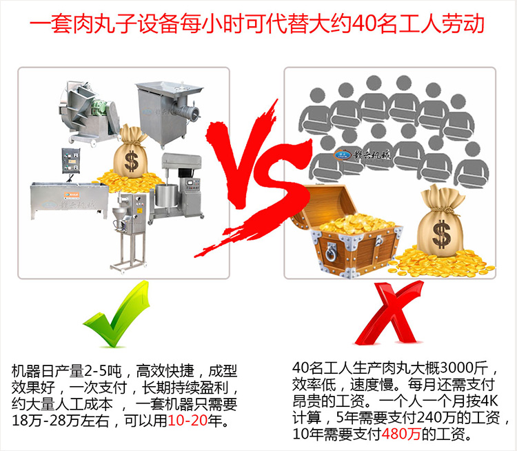 真材實料使用我們贛云機器做出來的每個丸子保證有嚼勁,肉感十足,絕不亞于手工制作!一次投資,回報看的到!