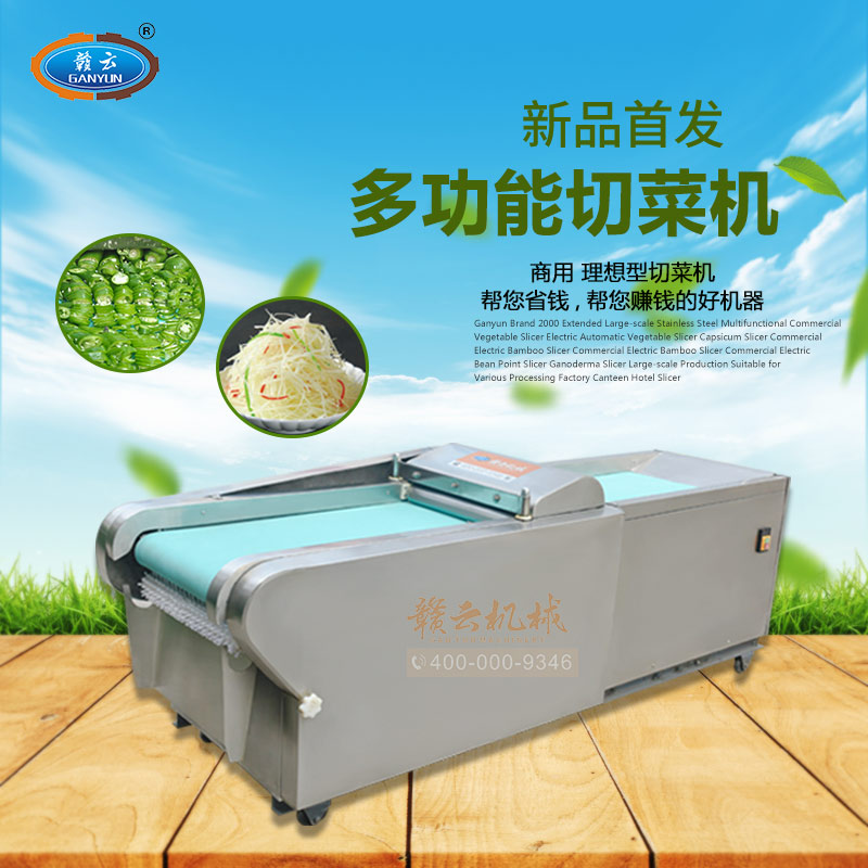 商用多功能切菜機可切片。將切好的片再次放入機器切割時,可切成絲,將所切成的絲,再次投入加工,即可得到小丁即餡。,也可以根據自身要求,調整刀的距離,切薄片,切厚片,自由切換。