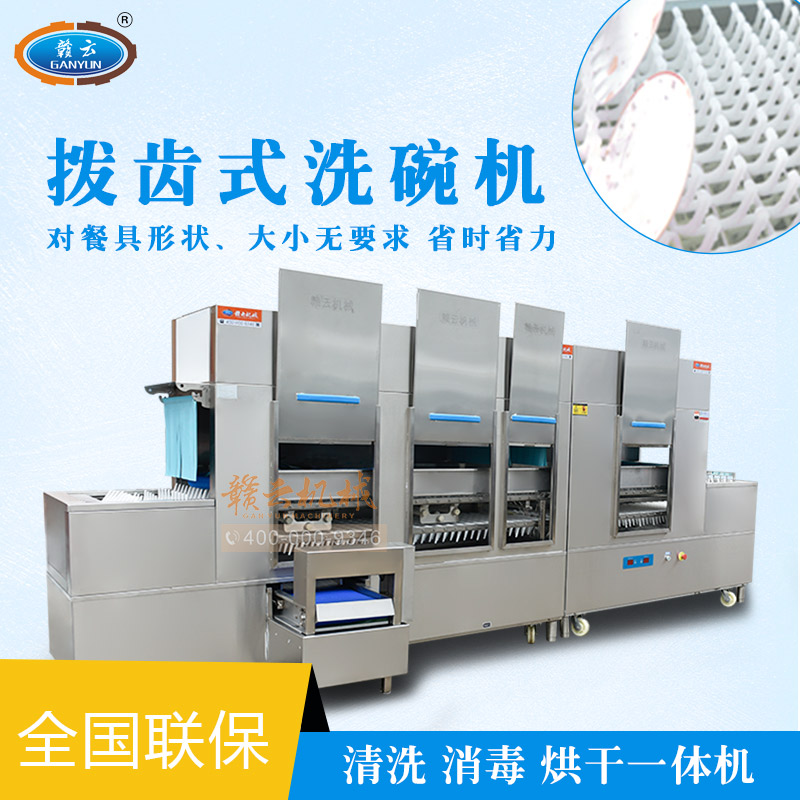 贛云新款長龍式式洗碗機,本系列產品經過除渣、初洗、清洗、漂洗、消毒、烘干一體化流水線操作,清洗簡單,撥齒型傳送帶,能更好的固定碗碟,洗滌過程中不易碰撞損壞,采用斜插式傳送,不需裝筐,不必考慮形狀,直接擺放清洗即可;碗碟斜插式進入清洗,清洗無死角。