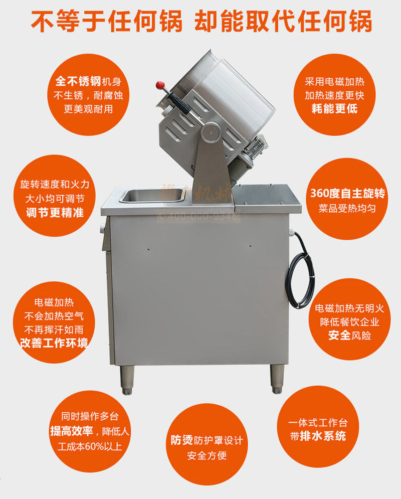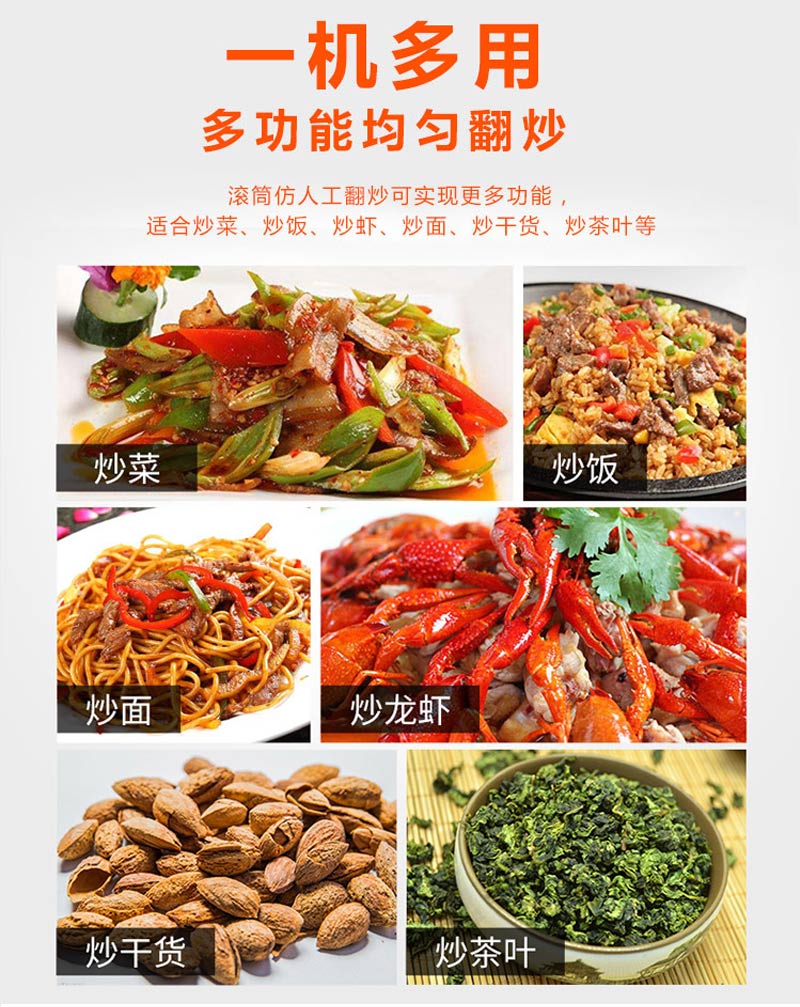 比如用燃氣灶,安全隱患多;用電磁爐盡管便利,但存在對人體發生損害的微量輻射;用抽油煙機無法吸收一切的油煙,也有很大的噪音。不銹鋼炒菜機選用的是全包式一體式加熱烹飪,更安全、節能、省空間。炒菜進程無任何油煙,接連炒幾十個菜,屋內空氣一直新鮮怡人。