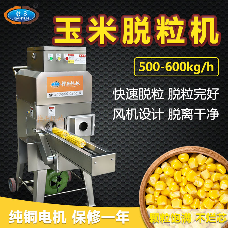 贛云自動玉米脫粒機操作簡單,適合各種鮮、甜、糯玉米、凍玉米解凍后脫粒。整機采用全不銹鋼制造,配合腳輪移動方便;變頻器控速、操作簡單;入料口處配有鏈條進給裝置,有效地提高了工作效率(此裝置可根據需要裝卸);輥軸可根據玉米棒大小自動調節,適合各種大小玉米的脫粒,脫粒深淺可調;出料口配有鼓風機使脫后的玉米粒更加干凈。