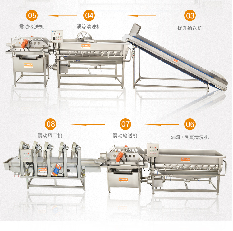 使用中央廚房化的瓜果類清洗切割處理流水線,或者蔬菜類清洗切割處理流水線不僅可以節省人力而且對食品產量,食品安全都是有很大的保障。