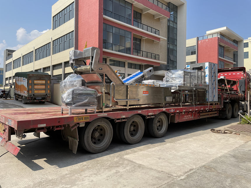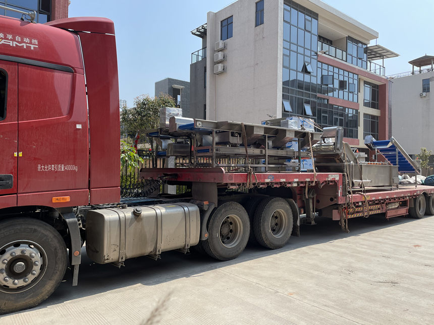 2022年3月15日下午15時許,陽光明媚,贛云機械廠區內,叉車轟鳴,運往河南的魚丸生產線,正在熱火朝天裝車。在這特殊時期,該客戶購買我廠自動魚丸生產線設備,為了防止出現延期情況,我廠師傅們特地加班加點提前趕工生產設備,不讓客戶著急,按時交貨。