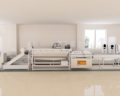 球根莖流水線的大致運行流程:首先先將食材通過浸泡提升機浸泡后在輸送到-脫皮機中加工脫皮-后面通過分選機的人工分選,將不合格的食材挑選出來-分選機將合格的食材輸送到切絲機或切片機等切菜機器中加工處理-再由提升機將加工好的食材輸送到漂洗,漂洗有多多道工序,通過渦流振蕩清洗和臭氧清洗后,再次通過震蕩清洗和過濾,最后進入震動風干機去除表面水分。