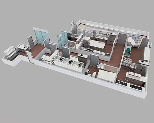廚房區(qū)域分布,一般分為:主操作區(qū)、食材加工區(qū)、清洗區(qū)、配菜區(qū)、消毒區(qū)、備餐區(qū)、食材庫、排污系統(tǒng)、排煙系統(tǒng)。