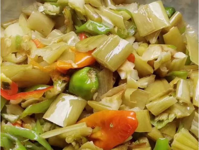 第一種就是撕皮后將芋梗切成1至3厘米,然后根據(jù)個(gè)人的喜好口味添加,蒜、辣椒等配料翻炒,這樣做出來(lái)的美食是很適合下飯。
